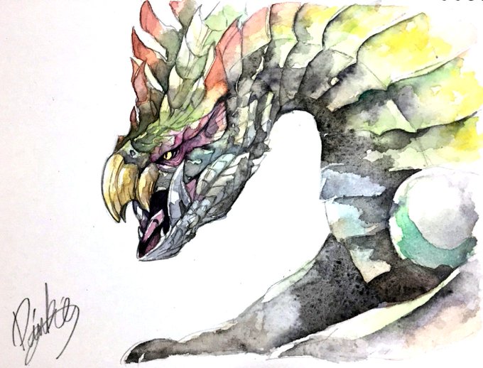 水彩画ジンオウガ #MH版深夜のお絵描き60分一本勝負