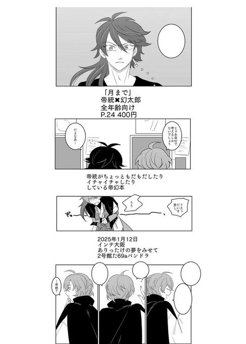 もだもだしつついちゃいちゃしてる帝幻の新刊あります!本の内容と関係ない派生帝幻も3ページあります。