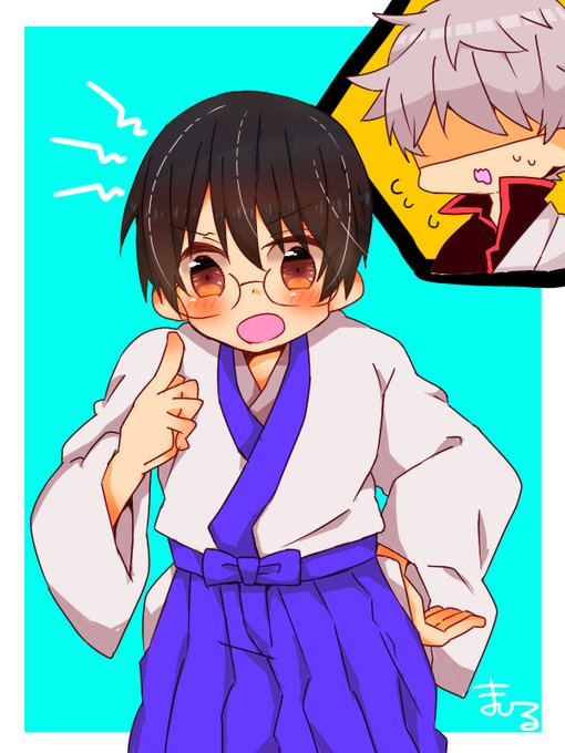 久しぶりにらくがき! そして久しぶりの銀+新。 神楽ちゃんが真似しちゃうからやめて下さい的な事多分言われてるやつ。