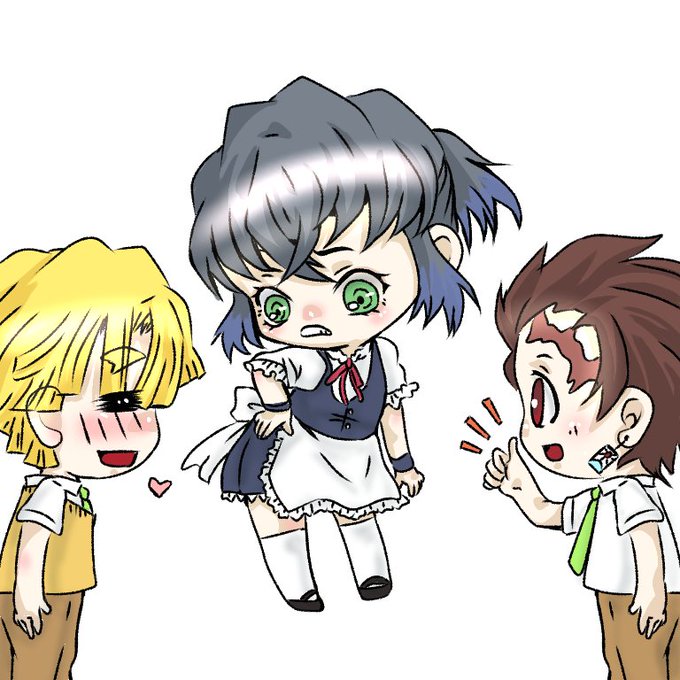 おーはーよー!朝から雷と大雨~( •́ •̀ )もぉ洗濯とか布団とか干したいわぁ…。 朝のイラスト。女装させられた伊之助。女子より可愛いよね絶対!