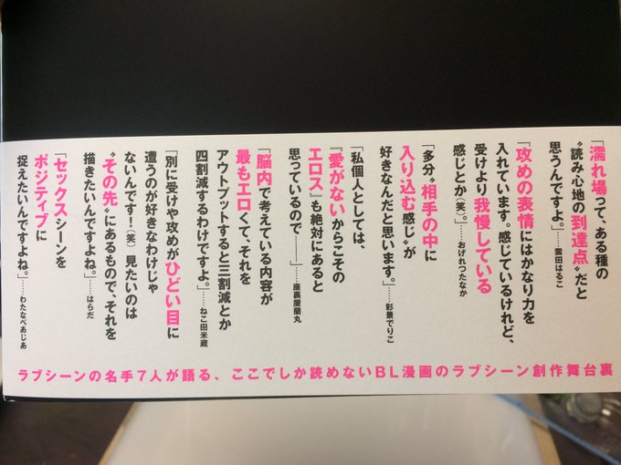 【告知】いよいよ本日7/19「BL漫画家ラブシーンがたり」発売日ですよ。表紙とインタビューを掲載頂いてます。よろしくお願いいたします😊💞