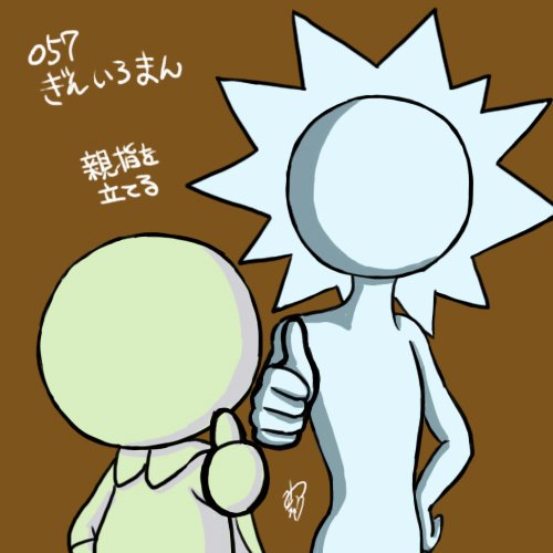 ぎんいろまんで「親指を立てる」 立ててるイメージあるのはガンバリルおじさんの方なので、どっちも描いた #1day1pict