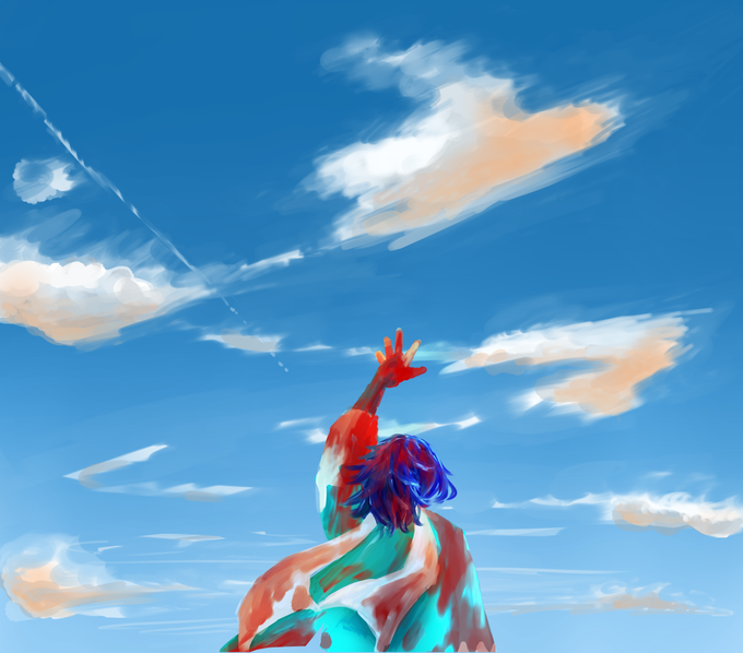 初参加失礼します、《水、裸足》での参加です。 水面に反射する夏イメージ…。足見えないけど裸足と言い張ります。 #鶴丸国永版お絵描き60分一本勝負