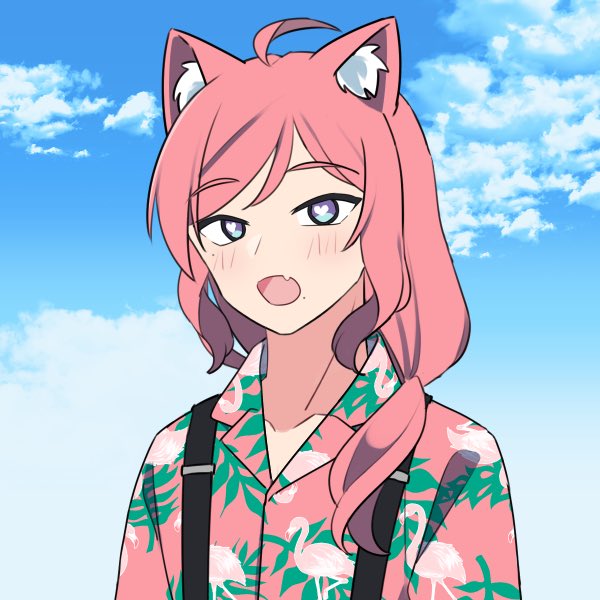 Male Miao is known for being a giant himbo much like normal Miao who is just a bimbo. Also flamingo shirt because why not.