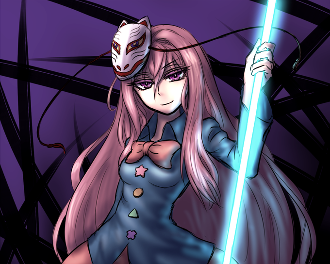 こころちゃん #深夜の真剣お絵描き60分一本勝負 深秘録カットインでほのかに笑っているように見えてカワイイ 狐面だからたぶんドヤ顔の笑み