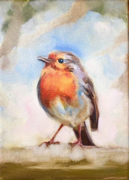Small 5 x 7” oil painting of a Robin. Getting ready for a Christmas exhibition #robin #oilpaintings #gardenbird