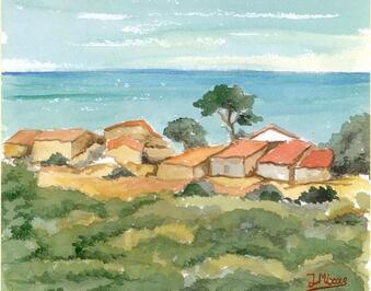 "Οικισμός στα Κύθηρα" "Houses in Kythera" watercolor