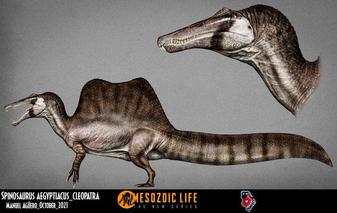 Looks like @MDinoart is using a new drawing technique for his designs, because I recently asked him to do the final designs of our #MesozoicLifeProject male and female Spinosarus.