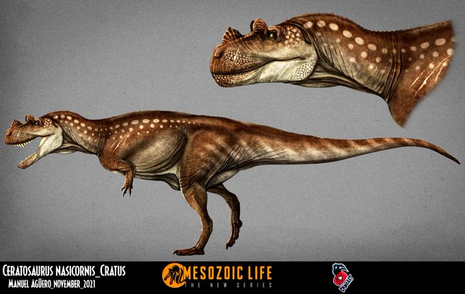 Here you have the new design of Ceratosaurus nasicornis from #MesozoicLifeProject by @MDinoart