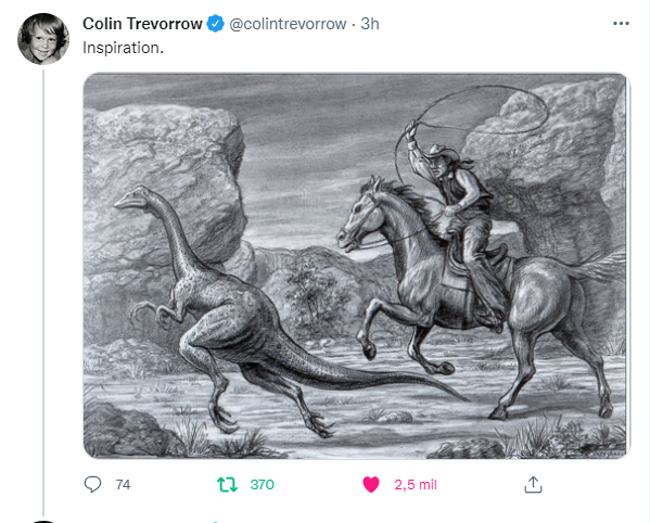 También me gusto bastante la imagen esta de su Twitter donde muestra esa inspiración en el estilo del mítico Ray Harryhausen que vimos en la película El valle de Gwangi de 1969😏