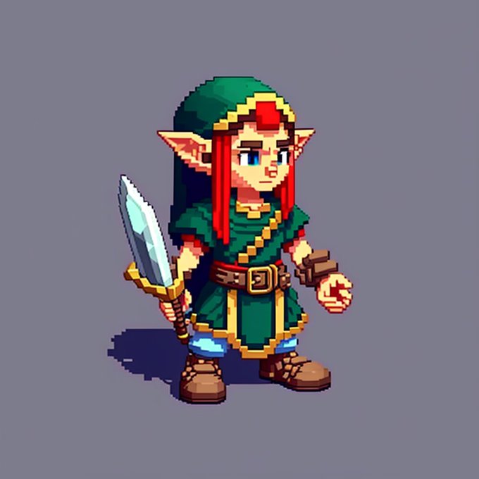 cute elf DND character, pixel art, game asset, isometric high angle