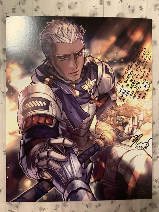 Love these incredible prints by @HellyonWhite. One of Dimitri and one of Dedue in their Three Hopes outfits signed by @ChrisHackneyGGK and @whitebathrobe. Dimitri and Dedue are the best!