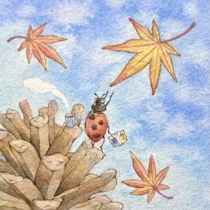 #イラストを4枚貼ると秋風に乗って絵柄を好いてくれる人の元へ届くらしい 届きますように🍁