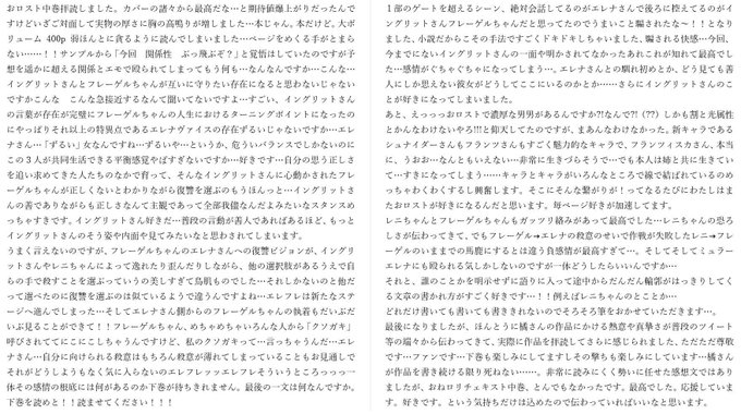 橘さんこんばんは。おロスト中巻拝読しましたので勢いに任せたもので申し訳ないのですが感想を伝えさせてください…。(ネタバレに配慮できなかったのでまずかったら消します)あとイングリットさんが好き好きの好きになってしまったので描かせていただきました。中巻も最高でした。