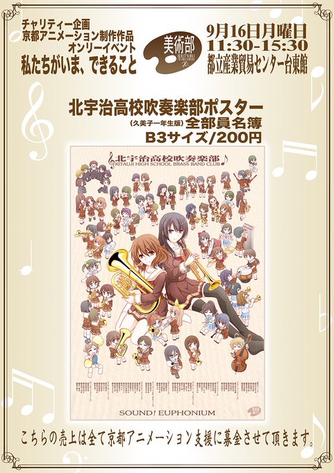 美術部では「北宇治高校吹奏楽部」ポスターをチャリティー募金用に頒布させて頂きます。