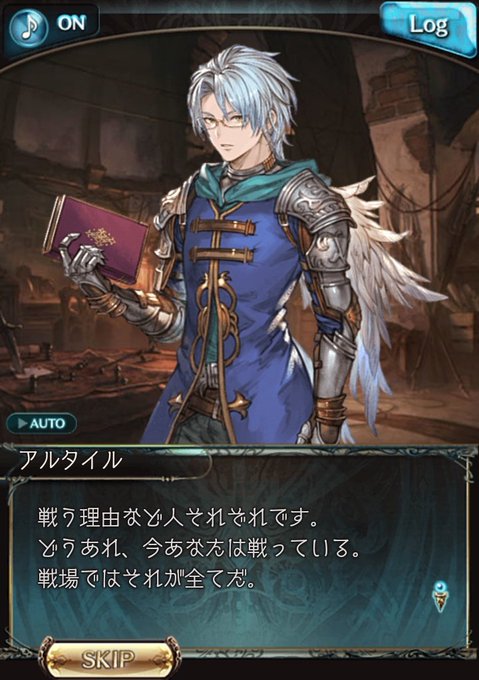アルタイルイベ⚠ネタバレ⚠アルタイルさんのドライな発言の裏側に『如何に犠牲を出さずに勝つか』という強い想いを感じるんですよね……めちゃくちゃ軍師……。普段はただの本の虫なのに……。(それはそれで可愛い) あと眼鏡が白く光る度に笑ってしまう。
