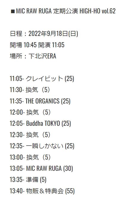 MIC RAW RUGA 定期公演「HIGH-HO vol.62」