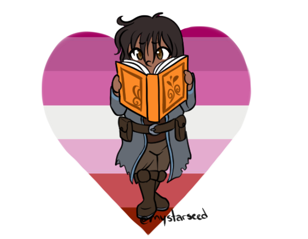 We're far from done yet! This is Leilani, a #bladesinger #daemonfey from Wanderers. She's #ace and more in love with books and knowledge than others, and doesn't quite get why the party thinks her and Guy are a thing. #PrideMonth
