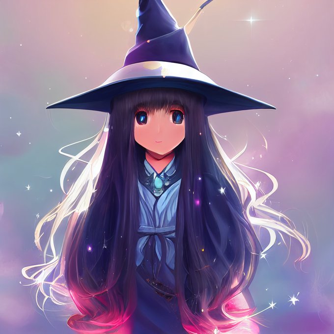 『魔女の帽子を被った長髪の女の子』 生成する度可愛い子が出てきて楽しい #midjourney