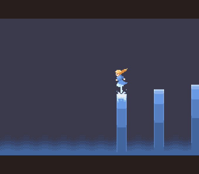如意棒伸ばして警備をしているキンシコウちゃんのドットです。 「下ではどうやって移動しているのか…」 「謎なのです。」 #けもフレ3 #ドット絵 #edgetouch