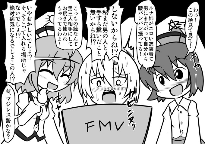 プリズムリバー三姉妹が野球拳する四コマ描いたよ。