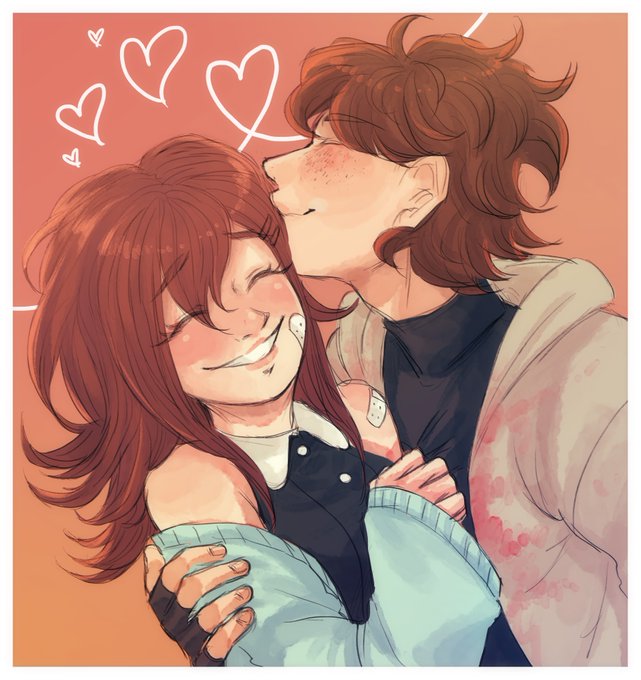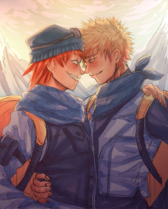 @BNHAValentine for @pikmindani_art !!! first time kiri saw bakugou laugh. he would do it