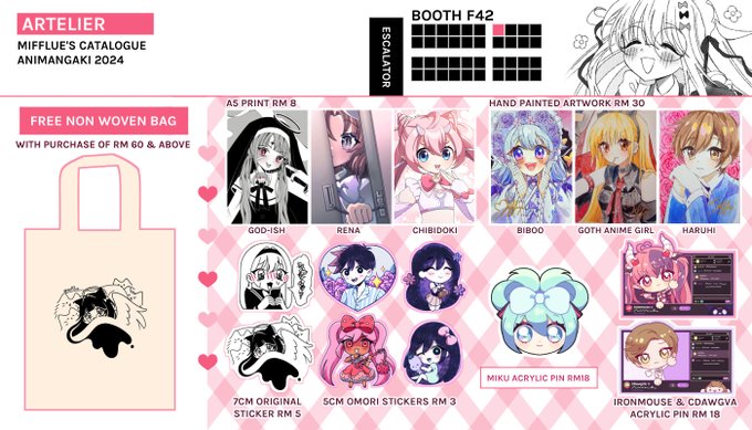 Hello, I'll be boothing at animangaki with ARTELIER(Booth F42). I did some original merch this time, see you there !!