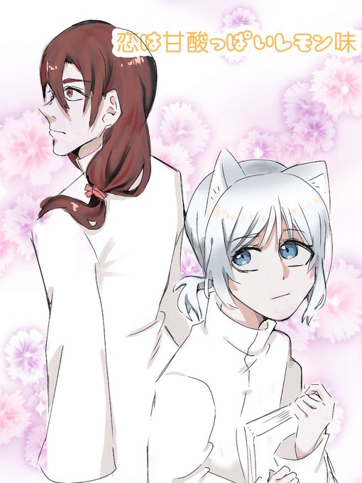 母方→髪と目が紫 父方→髪がオレンジっぽい茶の赤い目 で考えてみた三つ子 次男明らかに怪しいやつになった