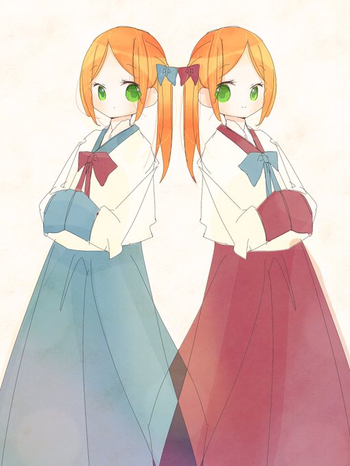 #enst女体化お絵描き60分勝負 お題:民族衣装 チャイナとチマチョゴリが大好きなんです!! 反転しただけ。