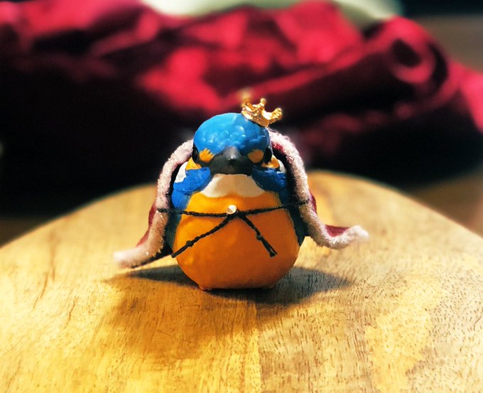 完成ーーー‼️✨ 既製品のカワセミフィギュアに手を加えてみました🌱 キングフィッシャー🎣(@kingfisher1091 )サンのマスコットキャラクター【ルカ】君みたいな王様仕様に👑