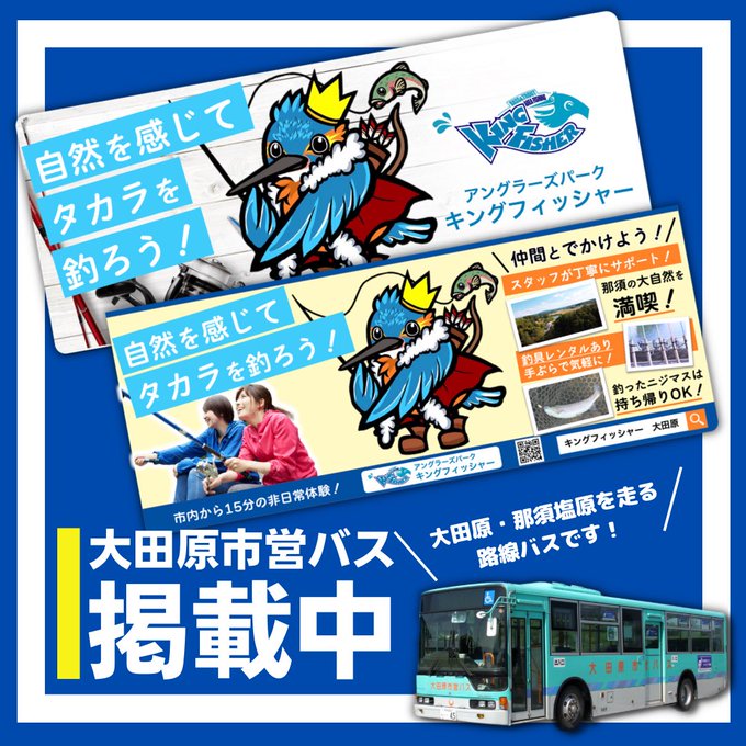 な、な、な、なんと‼️ 本日から、大田原市営バスにキングフィッシャーさん(@kingfisher1091 )の広告が掲載されます✨ ルカ君がドドーンとのってます👀‼️ 嬉しすぎるー🥰