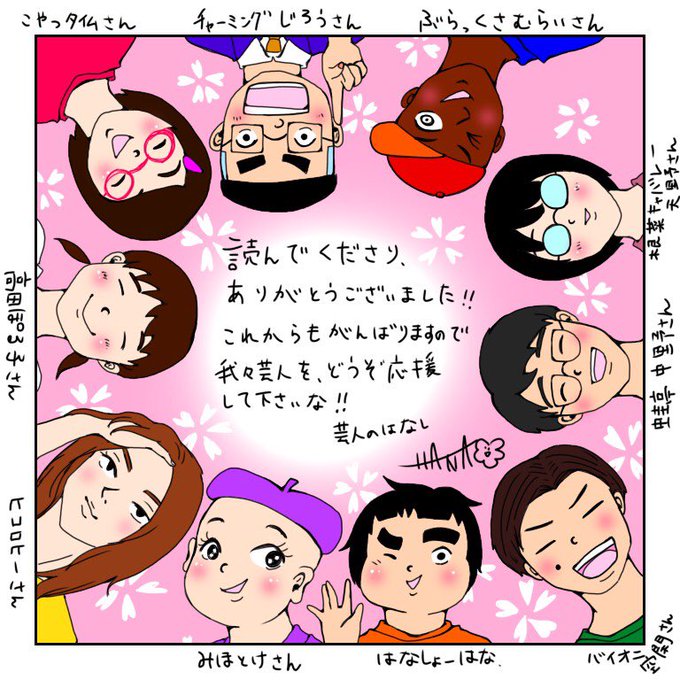 記念にはなしょーはなさんが連載メンバーの似顔絵描いてくださいました。私の顔が瀬戸内寂聴みたいで嬉しいです。