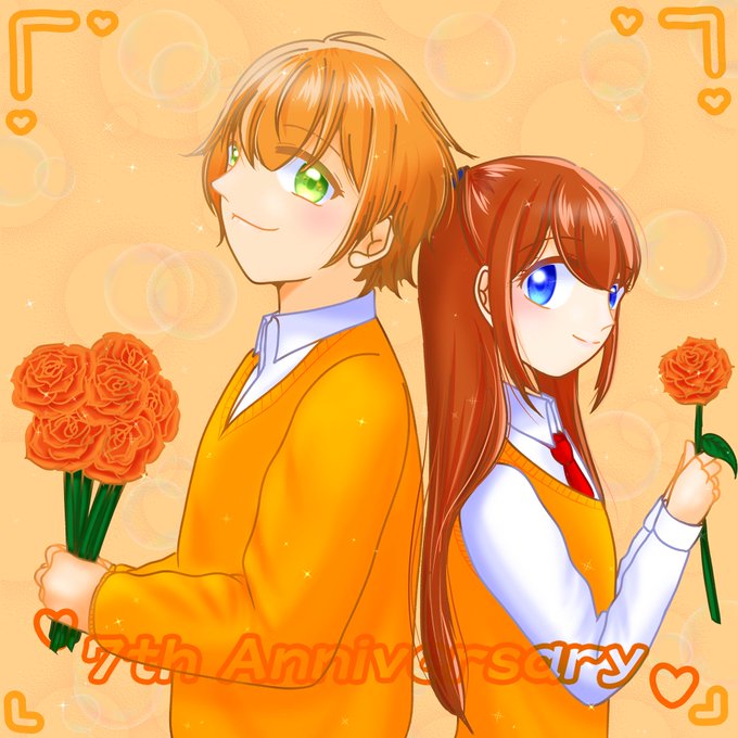 いい推しの日に描いてた💗くん 以前描いた🧡くんのリメイクなんだけど このポーズをどうしても💗くんにもして欲しくて(*´艸`*)♡ ならべたかったんだー💗🧡 完璧自己満です( ー̀֊ー́ )੭✨