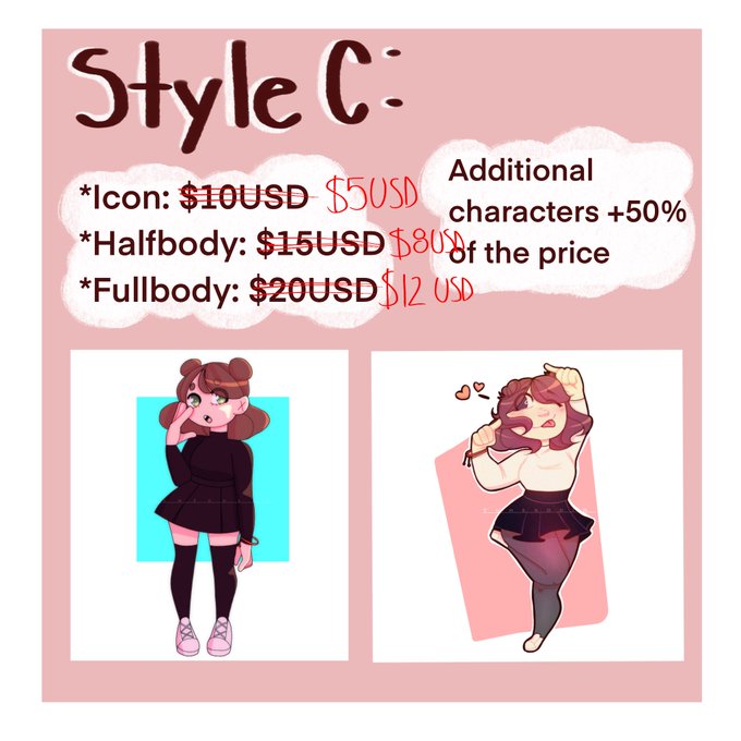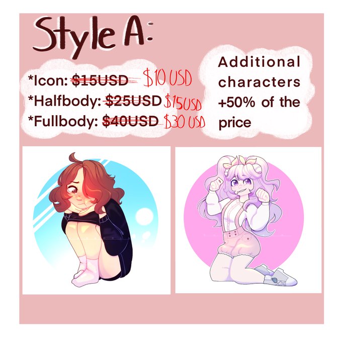 adding a discount for a bit for 10 customers! So I’ll only be taking 10 commissions with these prices before they’re back to regular! If you want additional details about my commissions or want to commission me please DM me!