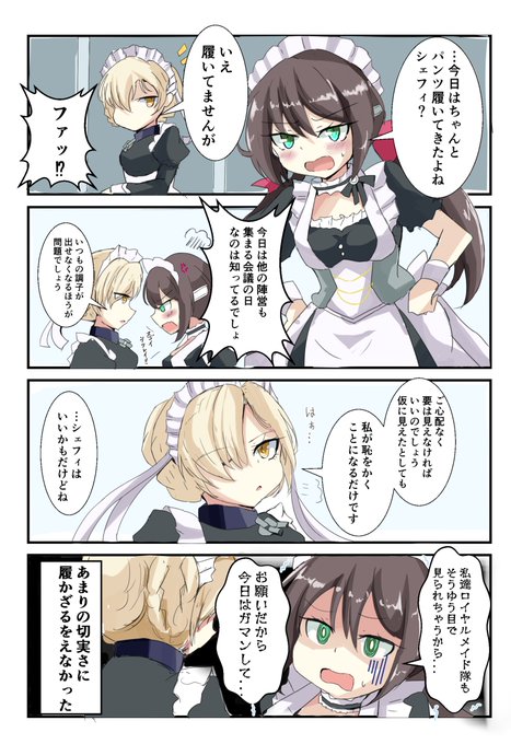 シェフィとグラスゴーの4コマです #アズールレーン