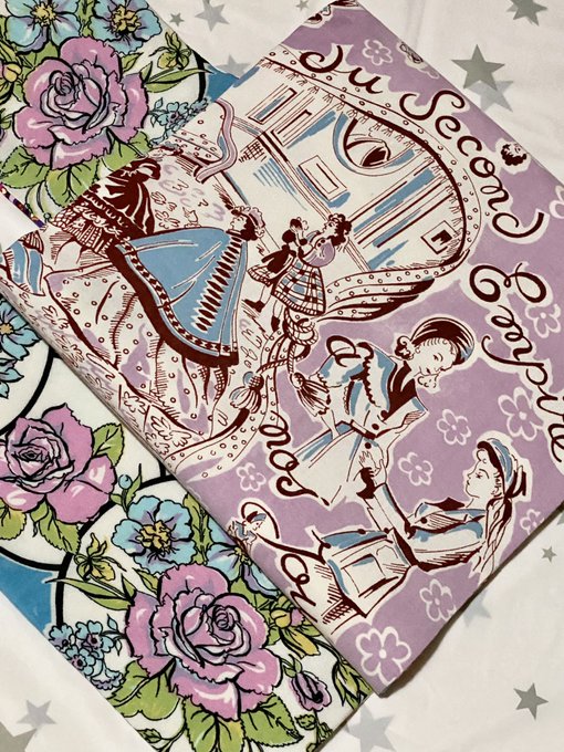 おしゃれなレディたちのイラストと薔薇がロマンチック🌹💕❤️ ヴィンテージ のスカーフから作った名古屋帯です♫