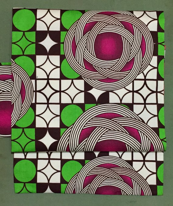 きれいなグリーンの巻き薔薇🌹のようなアフリカンバティックの名古屋帯