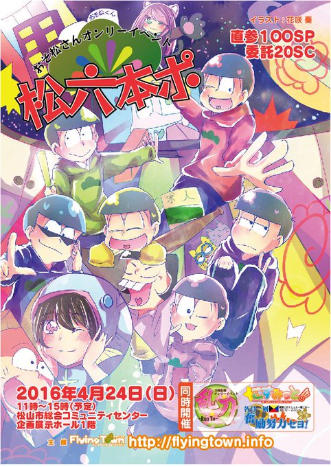 【緊急開催!拡散希望!】おそ松さんオンリーイベント「松六本ポ」4月24日松山市総合コミュニティセンター企画展示ホールにて、とうらぶ「乱刀」、艦これ「各員一層奮励努力セヨ!」と同時開催!Webは来週に更新予定です。よろしくお願いします