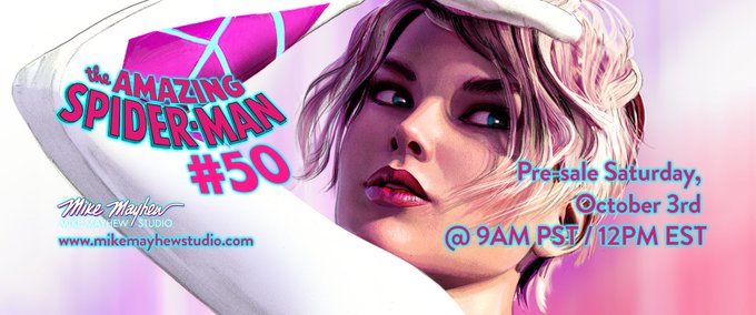 AMAZING SPIDER-MAN #50 Mike Mayhew Studio Variant pre-sale begins this Saturday, October 3rd at 9AM PST / 12PM EST! LINK IN BIO.
