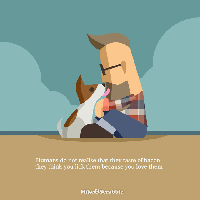 Humans do not realise that they taste of bacon, they think you lick them because you love them