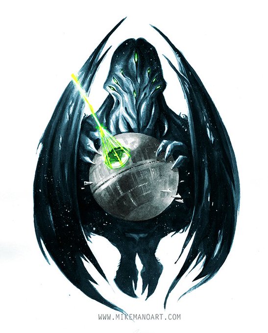 New little commission, Death Star vs Cthulhu! Which would you want to win and welcome as your overlord?