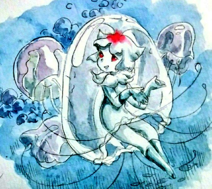 海さん(@sea110925)の素敵な世界観でキャラ化していただきました!🙏 ベニクラゲ、実質不老不死の体質とはいえ小さな個体だしパクッとされたら終了なので、ヒッソリ生きている。 見つかるかどうかは別として聞けば「人類」や昔の事など色々教えてくれる。