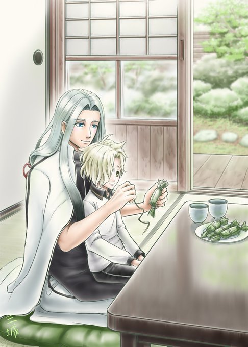 おやつを食べる姫鶴さんとごこちゃん(*´ω`) ※内番衣装