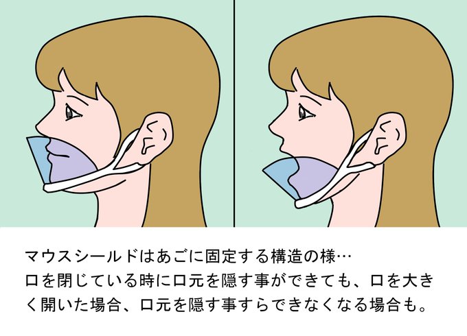 マウスシールドの効果を信用していないので自分で使ったことはないけど、製品や付け方によって少し差はありそう。