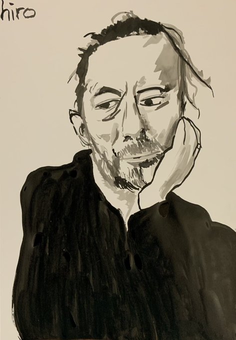 collection 1035 トムヨークの絵です(╹◡╹) #hiroc32 ロックンロール似顔絵個展''考える⇄ロック'' リード絵です(╹◡╹)