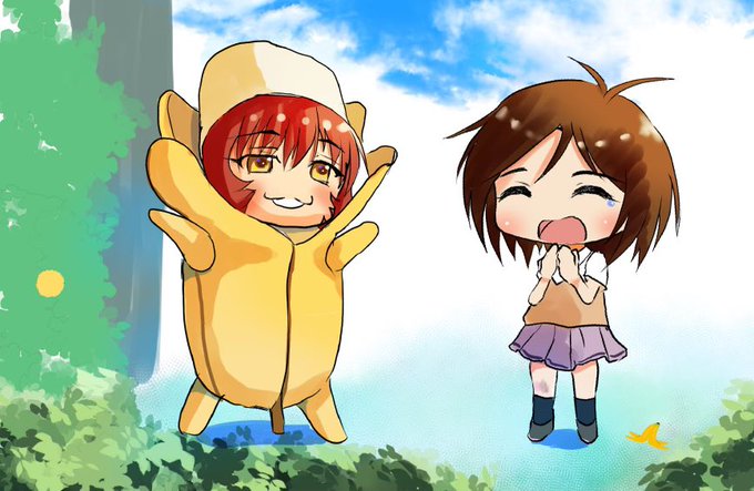 #モバマス版深夜の真剣お絵かき60分1本勝負 #上田鈴帆 #道明寺歌鈴 滑って転んだバナナでさえも君は笑顔にしてくれる✨