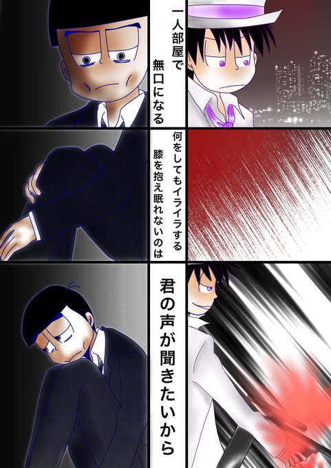 #rtされた数だけ好きな曲をおそ松さんで描く この曲が、とても好き。 暫く姿を見せないドンに、色々思い悩むヒラに連絡いれて逢いにくるドンの図…可愛いドンヒラ。 「やっと逢えたな、ガッティーナ!」 「…遅いんだよ、このバカ…っ」