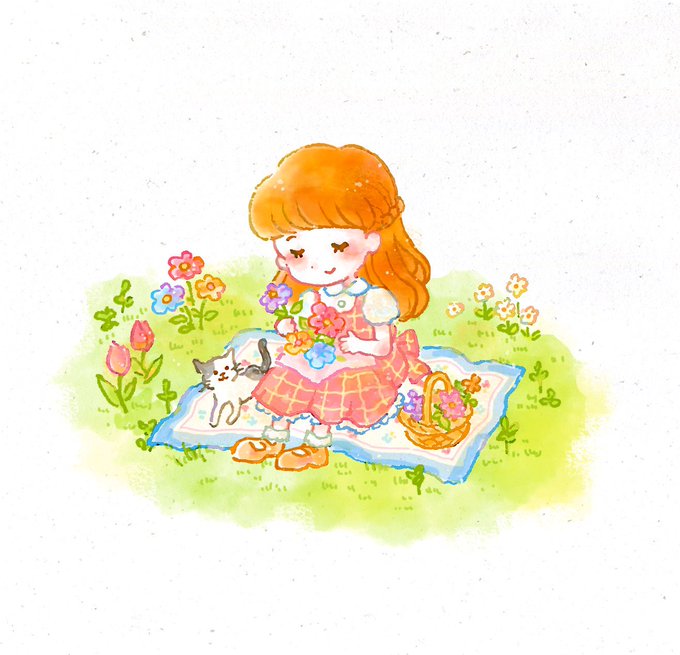 皆さんいいねとフォローして頂き ありがとうございます🙇♀️✨ 今日は猛暑でビックリ、、 ちょうど良い気温の日に ピクニックしたいものです☀️ #イラスト #ピクニック #猫