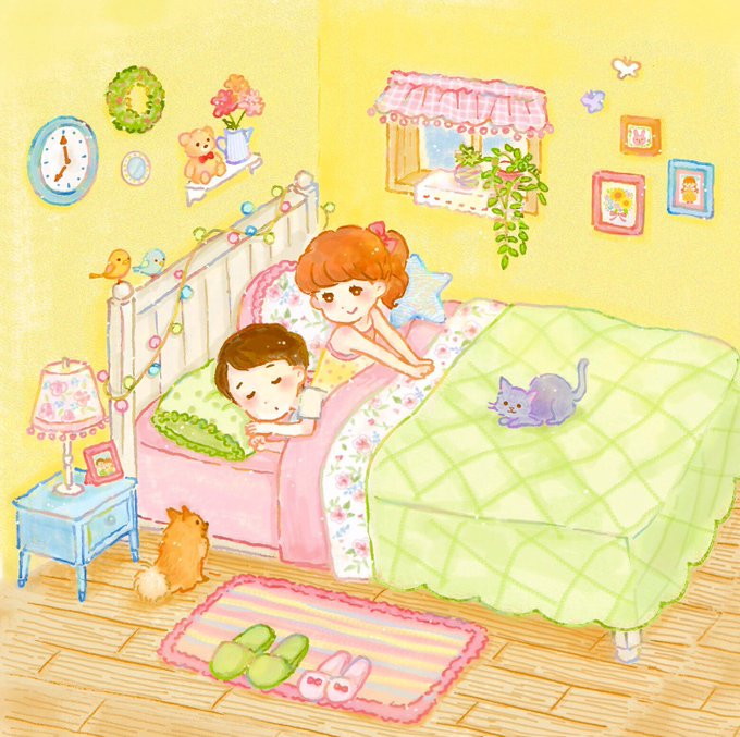 おはようございます🌷 実家の黄色い壁紙が好きです、、💛 #イラスト #お昼寝