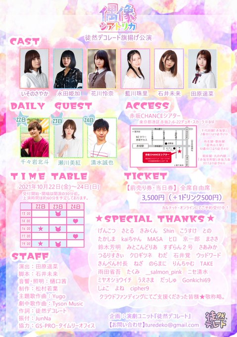 あ、フライヤーは見てくれた?どー?いしーちゃん、フライヤーも描くし脚本も書くし演技もするし歌うし踊るんだよーっ 大変だけど良いものにしたいな!早速ご予約してくれた皆様ありがとうです🌟